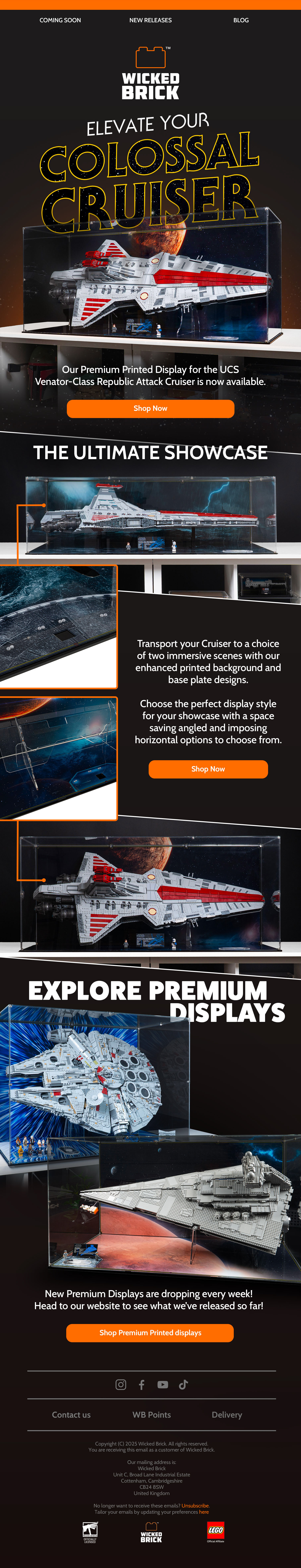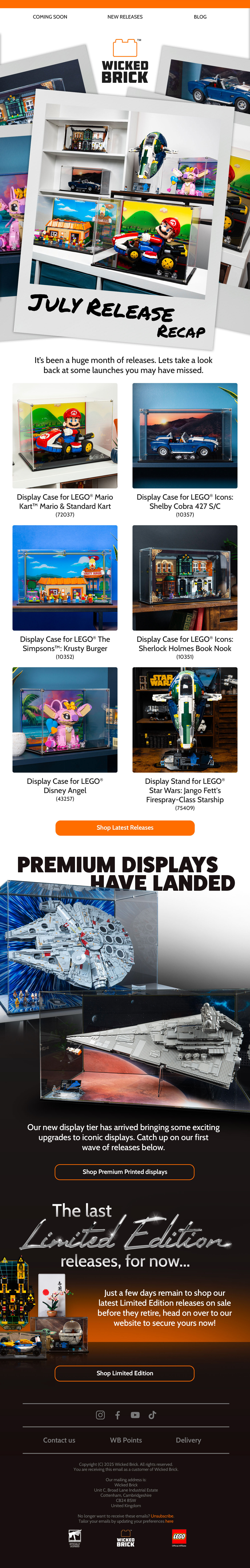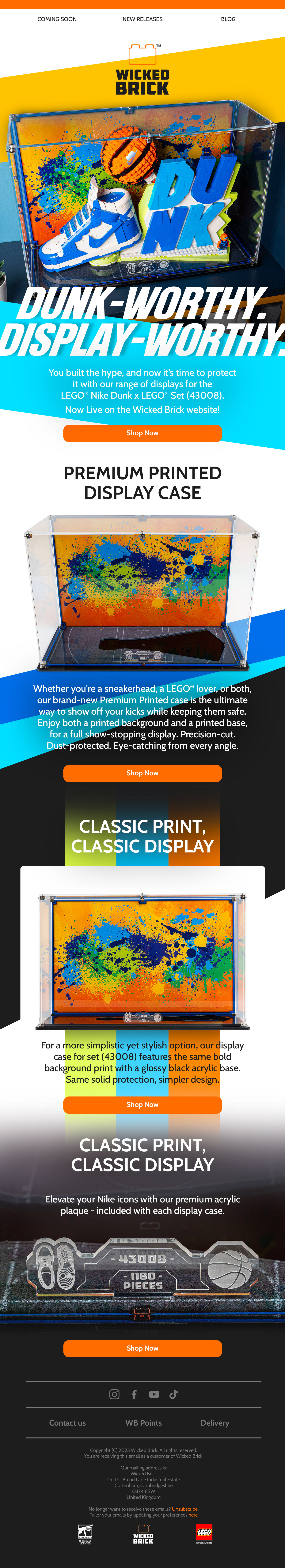 Below are a handful of email newsletter designs that I've created at Wicked Brick. In order to increase clicks and sales, I redesigned how our emails look, giving them a more invitational and interactive atmosphere. These new designs led to a 20% increase in clicks to the website.